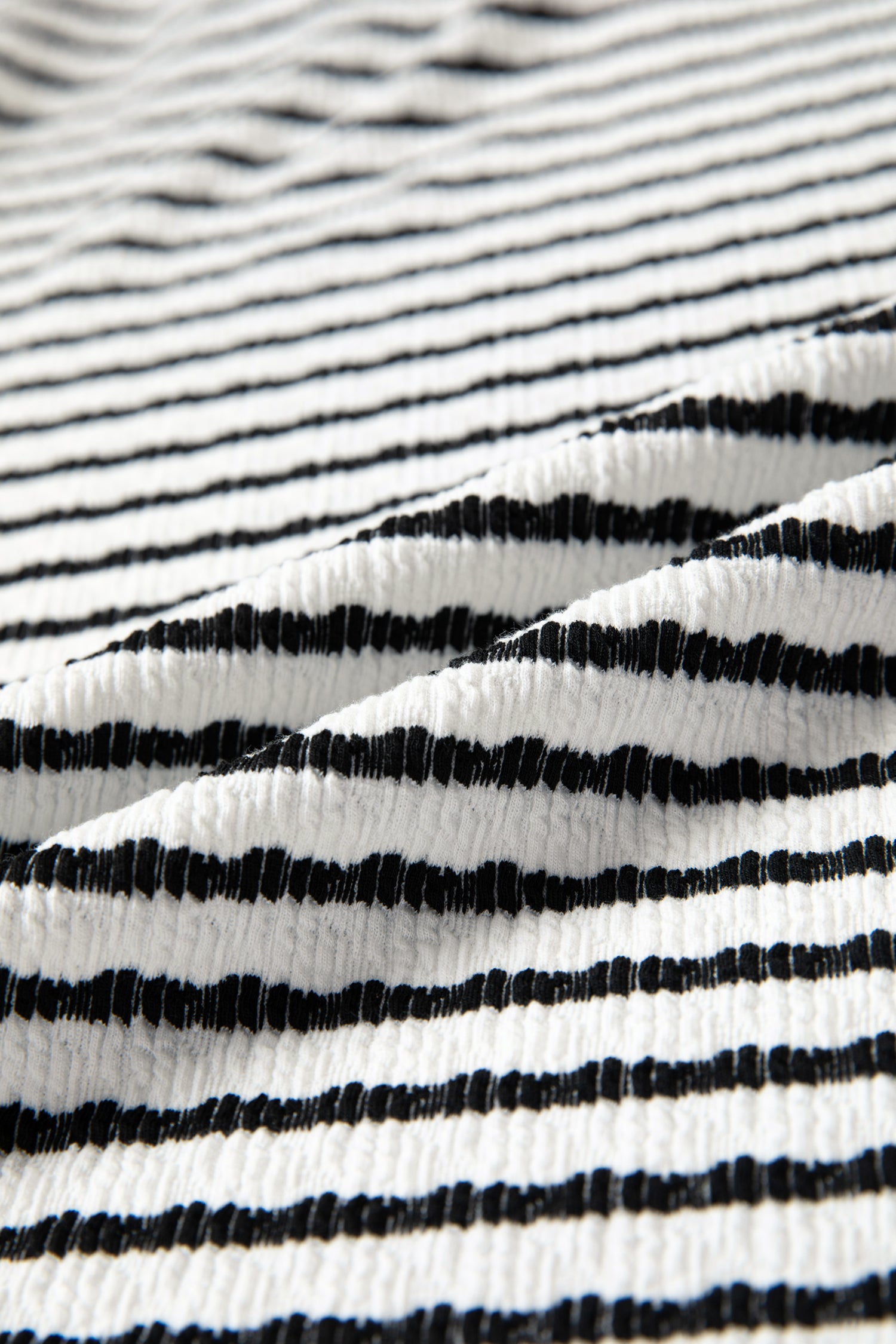 Black Stripe Textured Knit Twisted Rib Contrast Patchwork V Neck Long Sleeve Top