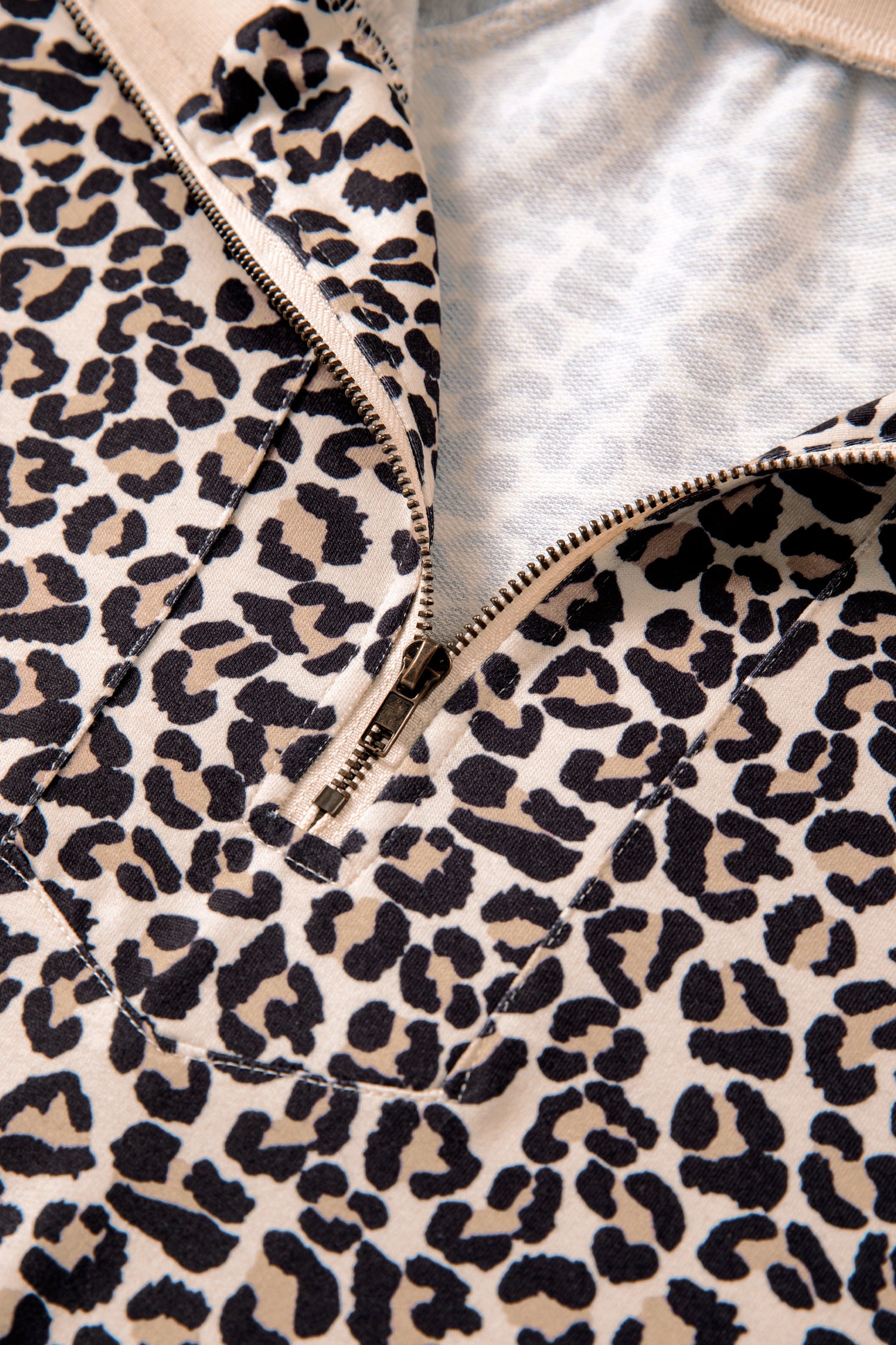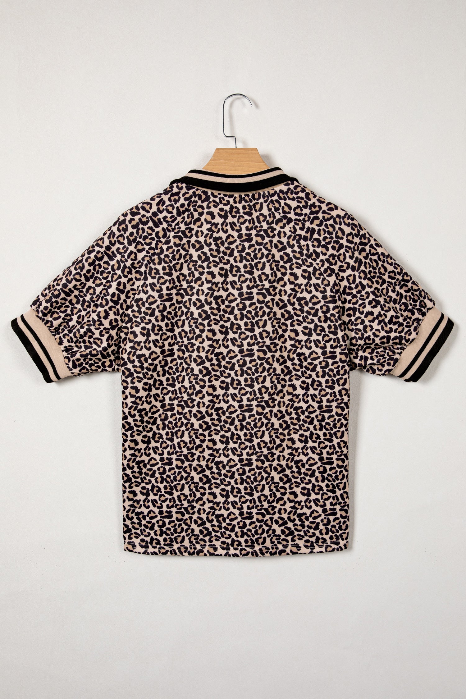 - Stylish leopard print top with a half-zip design for an easy, modern summer look.