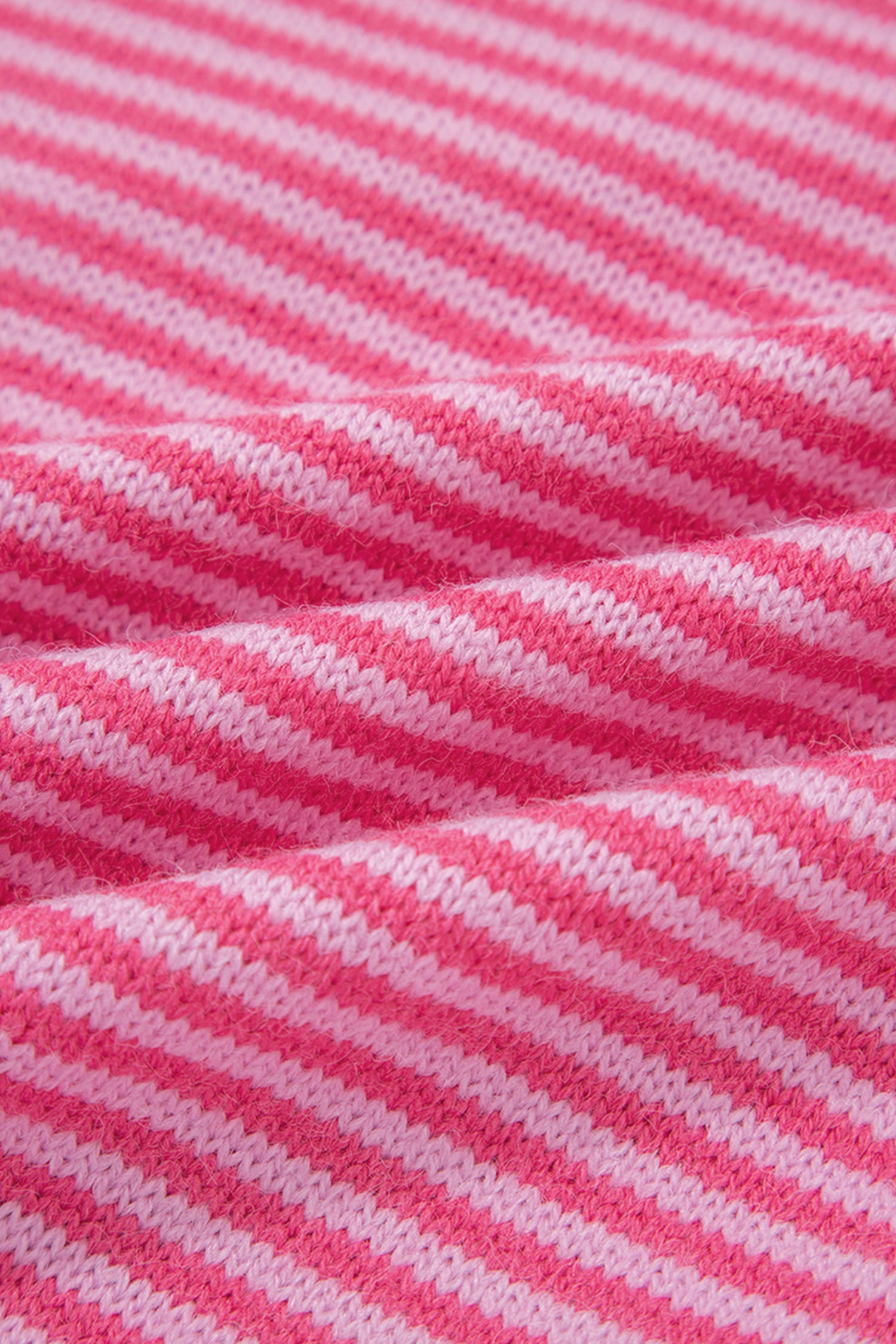 - Striped sweater features a loose fit style with round neck and drop shoulder.