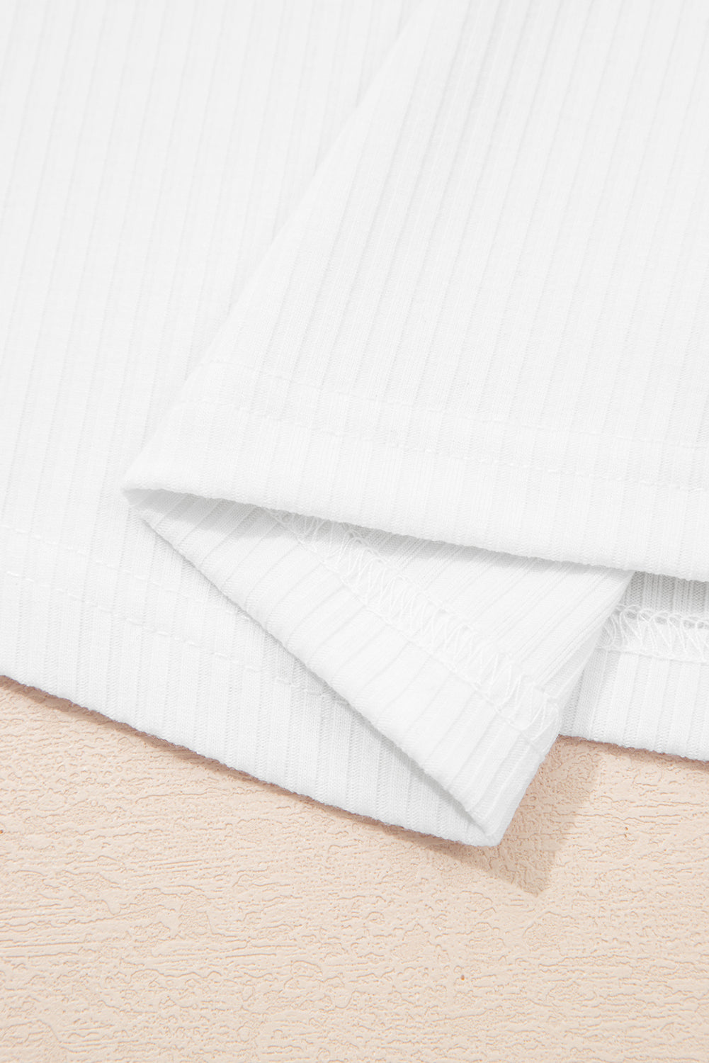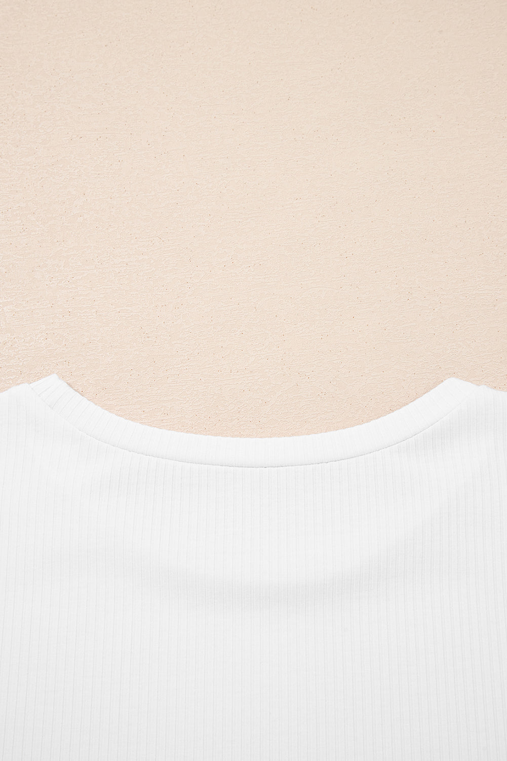 Jungle Green Solid Color Ribbed Ruffled Short Sleeve T Shirt