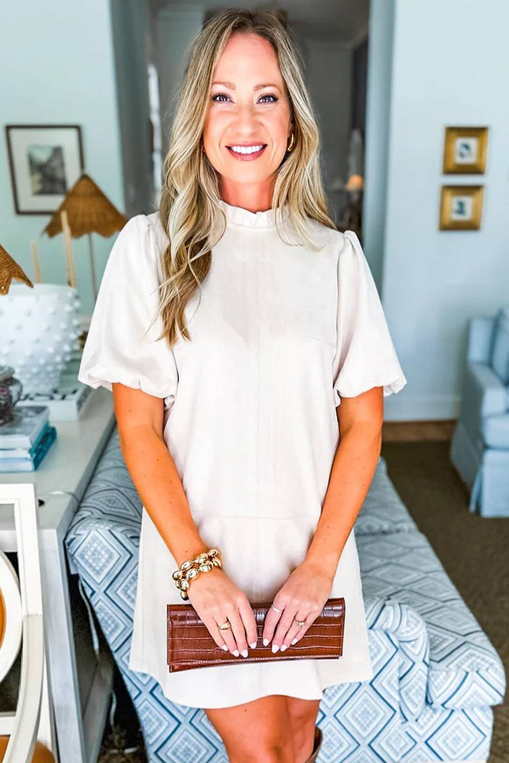 - Trendy short puff sleeves bring volume and playful elegance.