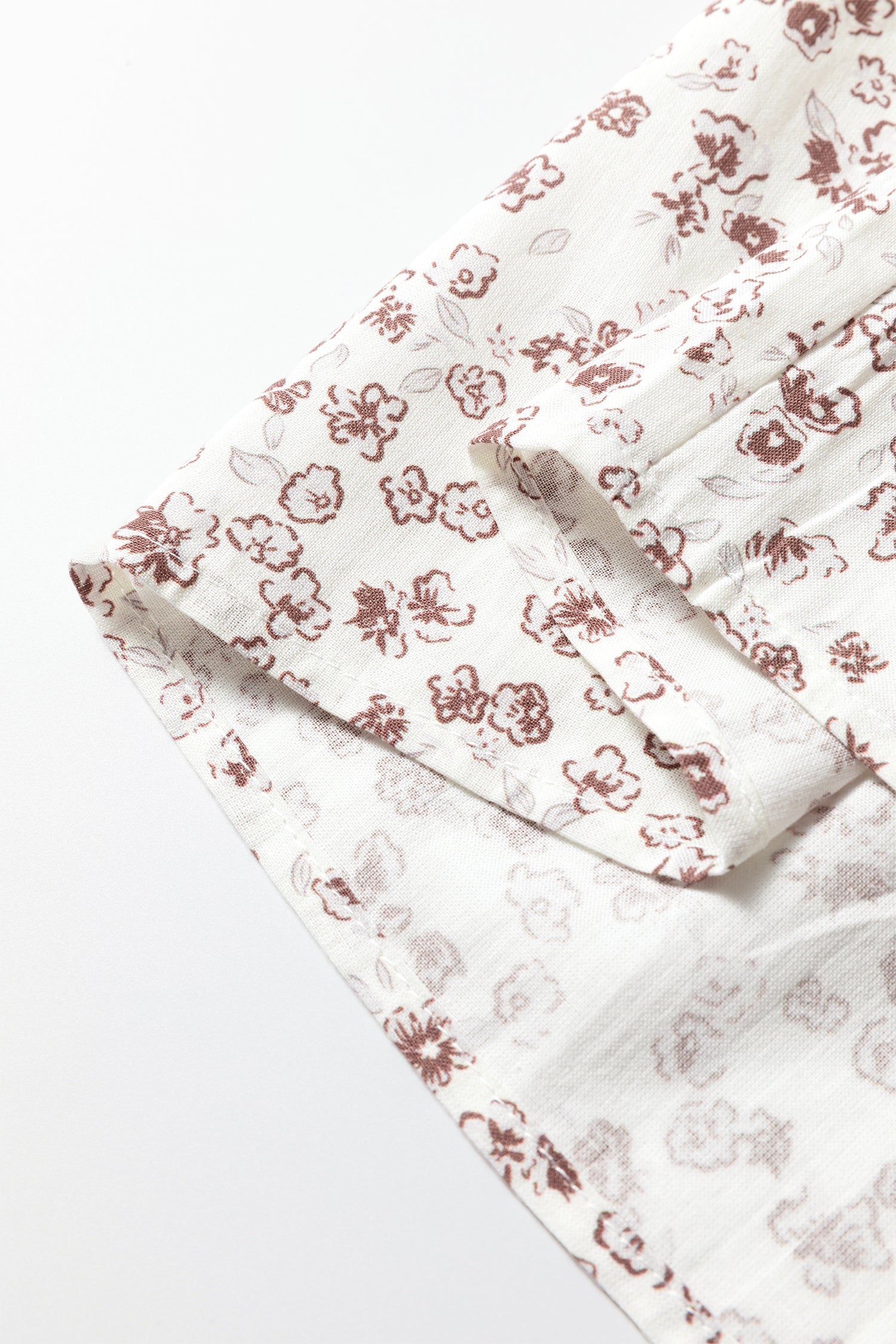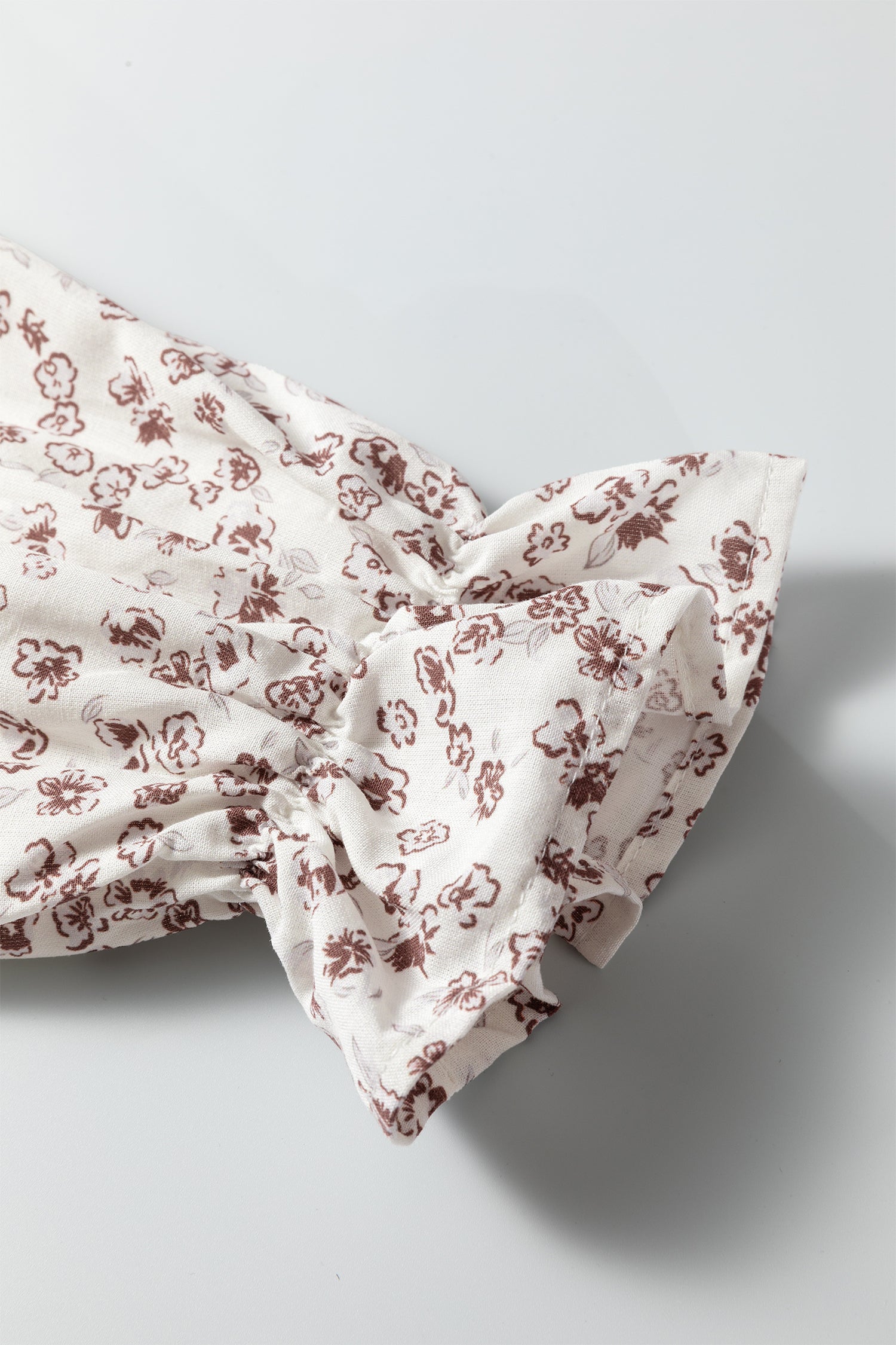 White Bow Tie Front Floral Print Flounce Sleeve Peplum Blouse