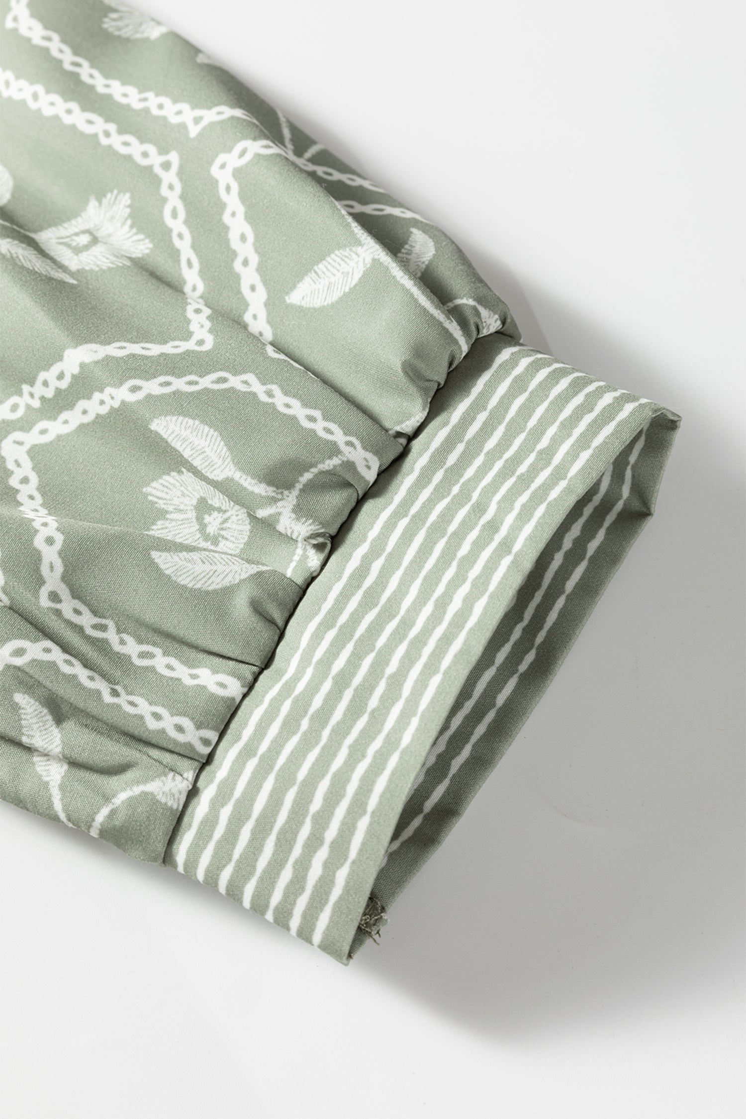 White Floral Puff Sleeve Contrast V Neck Patchwork Blouse